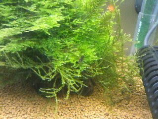 この間水槽内は1Cmにも満たないゴールデンアイが6匹と苔対策の石巻貝が5匹だけという状況で…小さな水槽とは言うものの、これだけの入居者では何だか水槽内が『どよ〜ん』としてぜんぜん面白くもなんともない水槽でした。